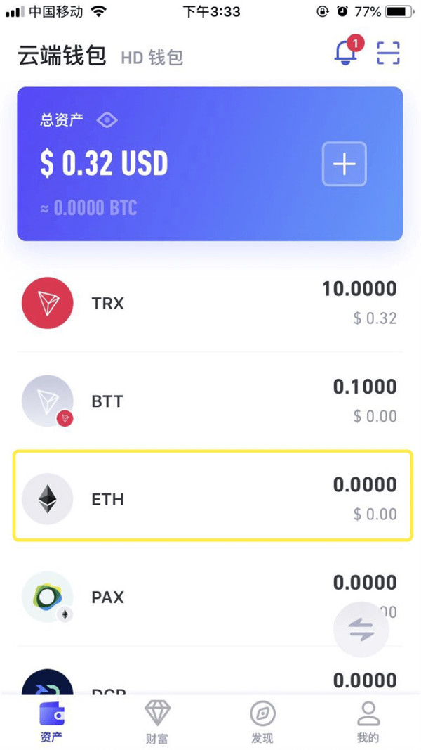 (以云端钱包ETH为例)进入云端钱包——点击进入ETH币种页面——点击【接收】
