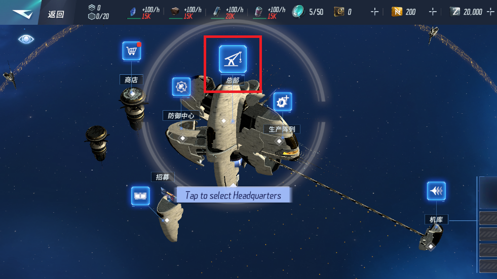 3、点击总部,开始建设你的基地。