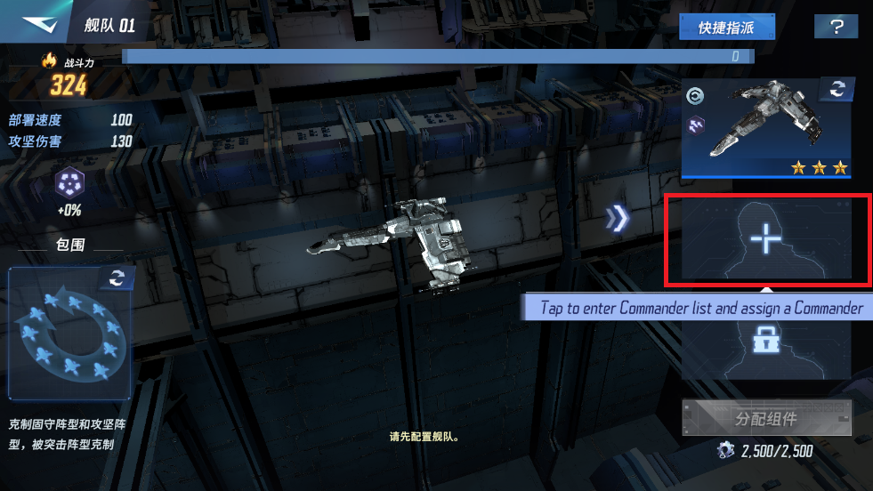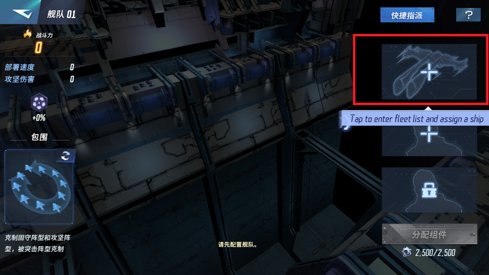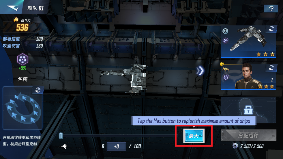 9、战舰和指挥官配置好后,别忘了为舰队补充战舰,点击底部的最大按钮并分配组件。