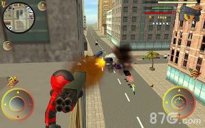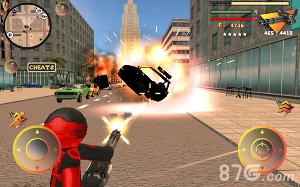 左侧移动、加速,右侧绳索,攻击(跳跃),跳跃,右上侧的武器更换以及血量、经验的显示都实时更新,一览无遗,凭借着大家自由的玩法,与其他帮派的人物进行交火,期间杀敌人能够获得经验,杀多了会产生星级,巡警和其他附近角色会特殊照顾你对你展开火热的进攻,而如何存活,如何将其他人物击杀则是你所需要完成的任务。
