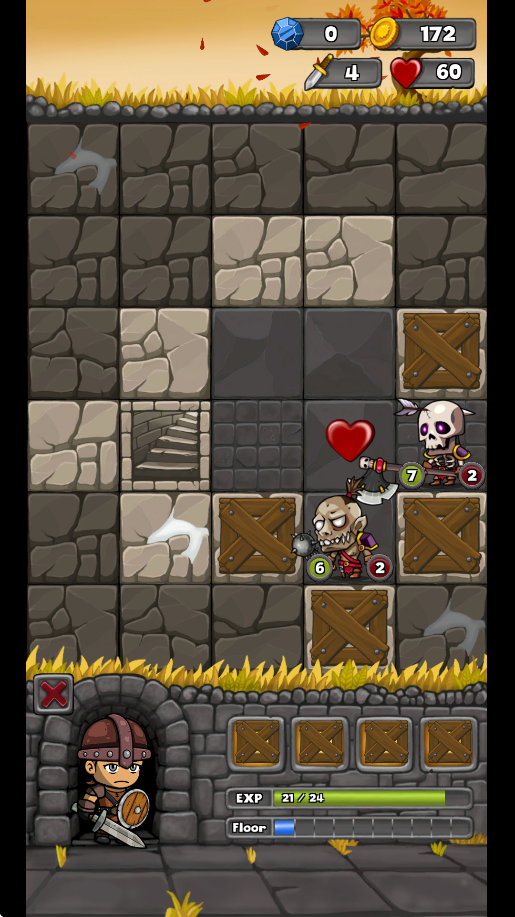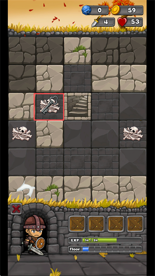 4、进入游戏后,将在楼梯口的石头都击碎,会出现不同的怪物要将其击败