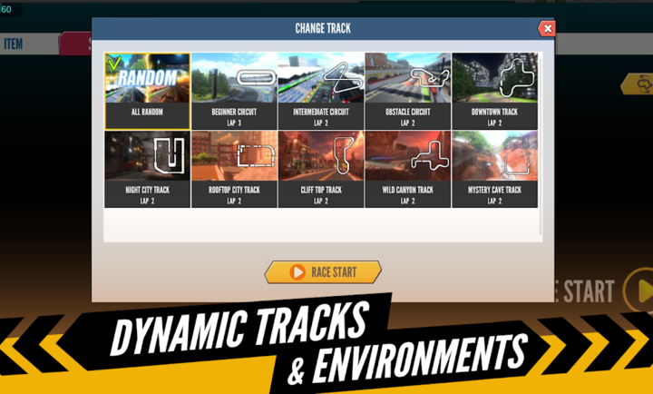 速度并非唯一关键——使用强化道具进行攻击和防御。设置毁灭性的陷阱、发射火箭或部署护盾,智胜对手。时机至关重要——在对手最意想不到的时候出击,瞬间扭转局势。