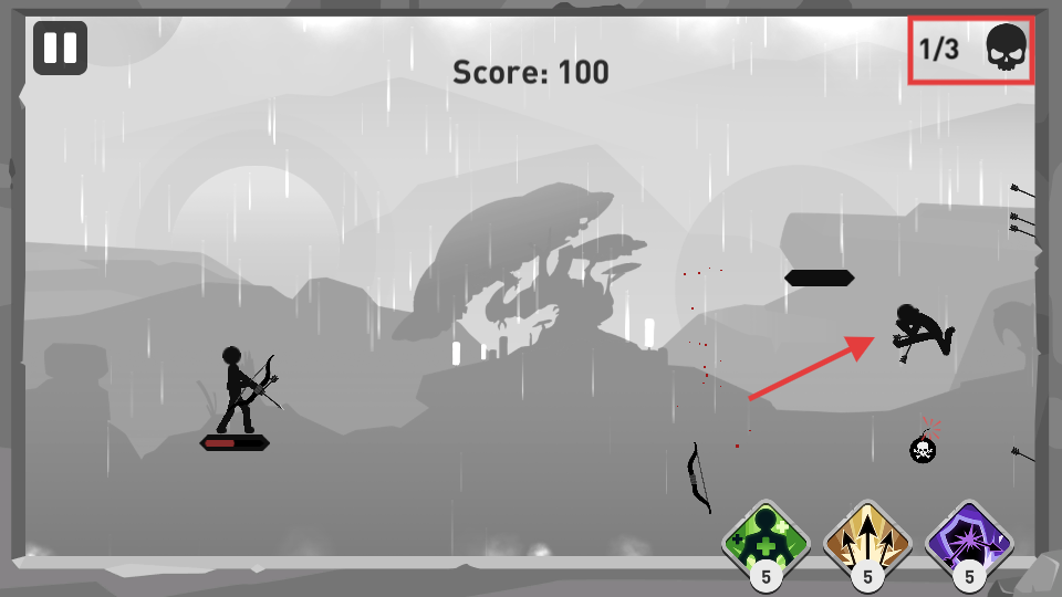 3、瞄准敌人要害一箭击杀,快速完成【1/3】击杀目标,提升得分效率推进关卡。