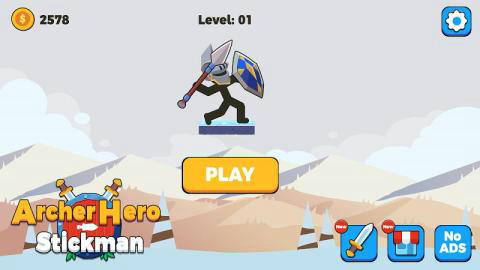 1、点击【Stickman-Archer-Legends】的开始按钮,进入游戏开启火柴人射击闯关。