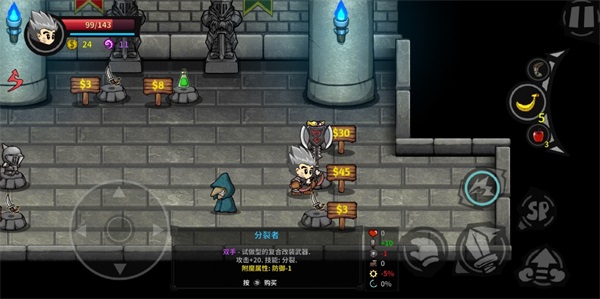 适中的打击感+易上手的操作模式+“稍稍有点难”的挑战难度,“横版动作闯关”这种熟悉的玩法将唤醒手指的躁动。大量的Roguelike元素,让所有关卡、怪物、道具都随机生成,运气也成了左右胜局的一把好手。