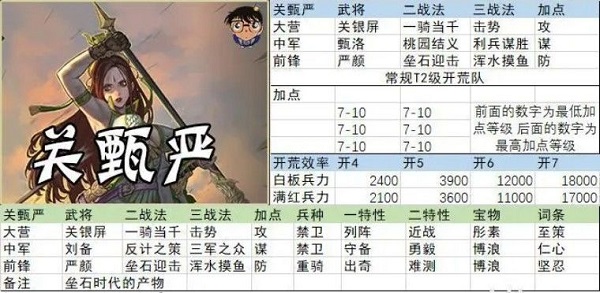 在优先加点主战法的前提下,战必断金和磐阵善守的加点也需要注意,很多玩家在分配的时候非常迷恋技能面板种的几率,总是认为等级越高效果越好。实际上战必断金和磐阵善守并不需要加多少,战必断金5级即可,磐阵善守就算是一级也能发挥出应有的效果(征兵的时候甄洛必须比另外两个少1个兵,最大程度发挥磐阵善守的作用)。
