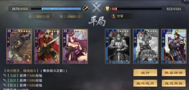 在前期手动征兵不仅能够省下较多的资源,耗费的时间也很短,最重要的是能够省下1200个预备兵来给自己的前排快速补充兵力。这样一来就不必每次打完地都要暂停等待征兵,效率更高。第二点,在分配战法经验的时候必须注意自己的目标是快速提升等级完成觉醒。因此自带的技能必须优先加点,一般来说提前做了准备的玩家能够点满两个武将的主战法,如果没有多少准备的话考虑一下用荣誉点换吧。
