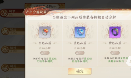 装备有等级限制,自然也有品阶的划分,人家如果想要制造出最高品阶的装备那么玩家使用的材料一定是游戏当中最稀有和最好的。玩家制造出来品阶不高的装备之后,也不要直接将装备丢掉。如果玩家拥有提高品阶的道具,也可以通过道具不断地将装备的品阶提高。