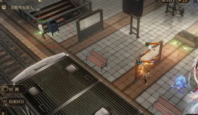 M113关卡需要我们在中间这个灯的前面(如上图站位),停留2回合即可,期间停留的那个角色不要移动就好。