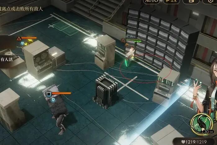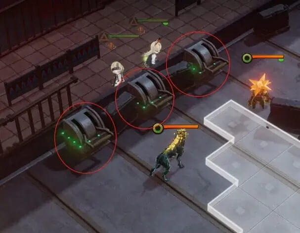 M214关卡需要我们把地图中央的这个掩体给彻底炸掉后即可,不过这个掩体本身有2点耐久,所以需要炸2次,大家注意分配好角色的回合。(例如用格蕾茜就是第2回合和第5回合分别炸一次即可炸掉)