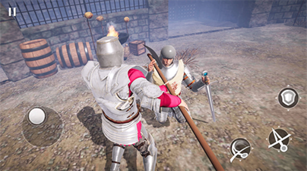 第四关:从现在开始敌人三个三个来。可以捡到短剑和长剑了,可双持短剑全攻全守,也可以持长剑更帅。守关boss是3个中甲。记住先拨开敌人武器,再反手一剑,敌人哪儿没护甲砍哪儿。