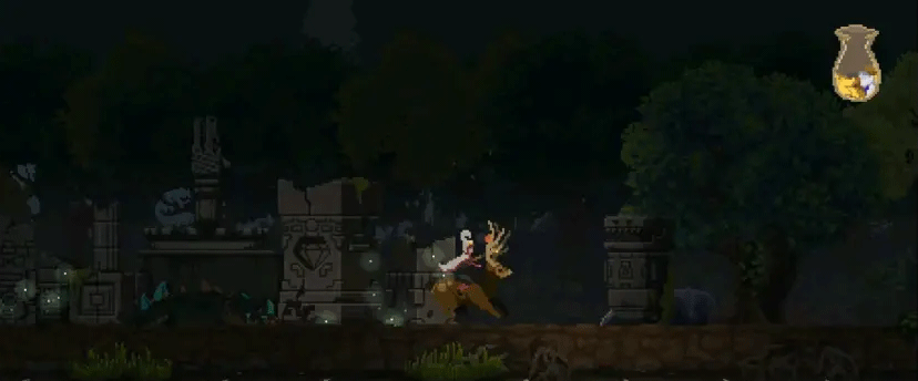 这应该算是一个彩蛋的东西,在第二个岛屿的一个倒掉的树桩子上方丢掉一个金币。然后树桩子会破掉,从中钻出一个狗