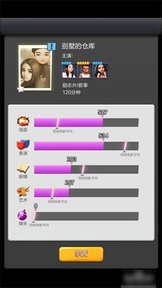 这个是非常重要的,你需要去提升演员的属性,这样才可以提高电影的属性,当满足大部分观众时就会出大卖以上的电影。