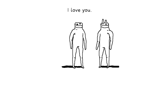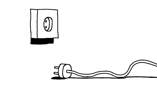 经过一黑一白的画面后,插座人会在插脚下面停下,此时插座人似乎还在怀念有插脚时的感觉,或者原来的性别那种感觉,它看了看地面的插脚,最后将插脚再次插在头上。