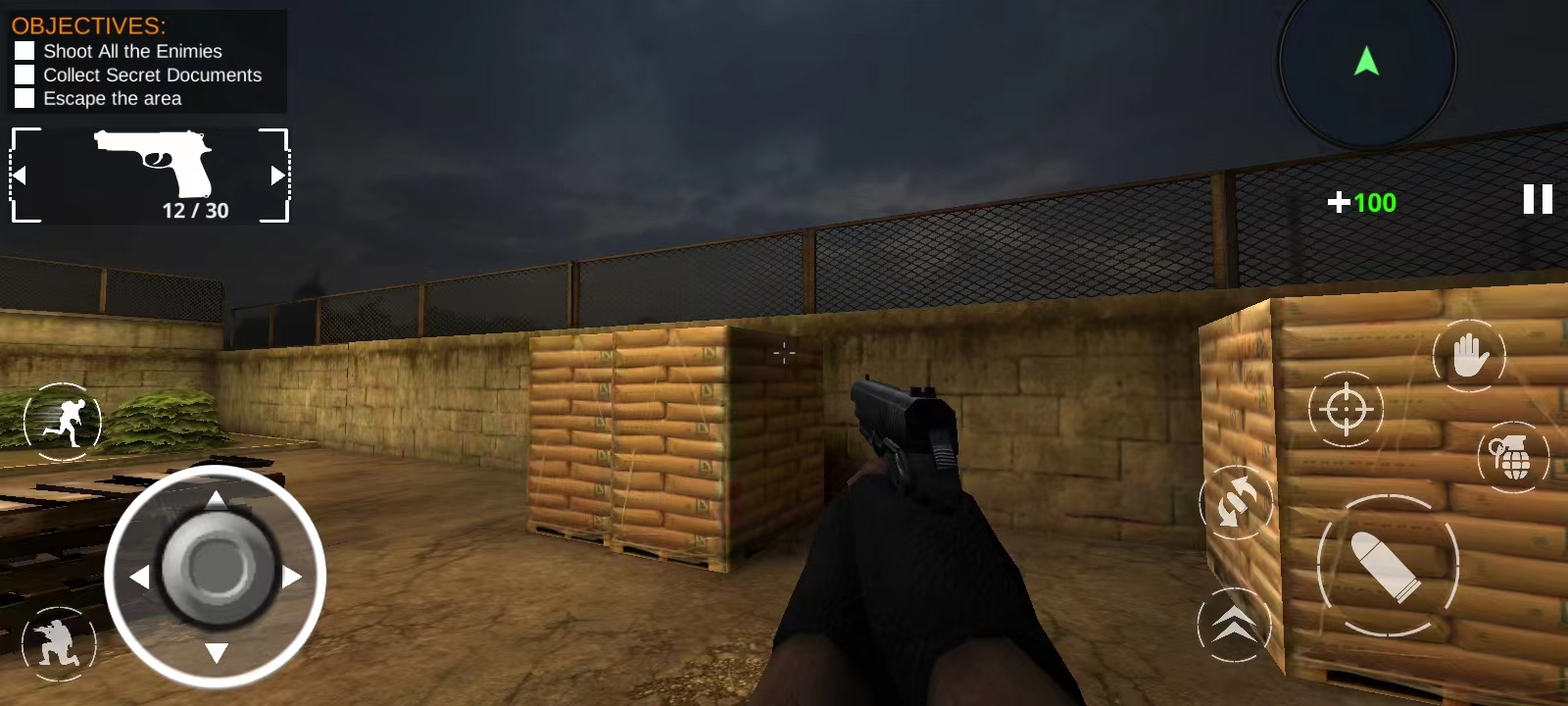 3、就正式进入了游戏;左边的移动按钮是虚拟键,玩家手指点上去就会出现,而右边则是射击,瞄准等按钮;