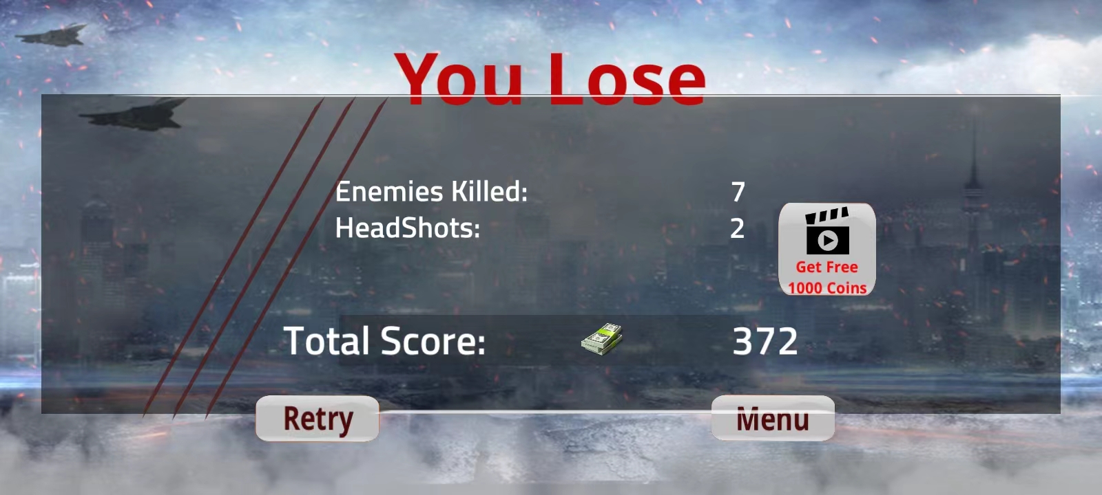 6、玩家还需要躲避一下敌人的射击,如果这里成为0的时候,游戏也就结束了;