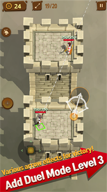 2.通过拖拽屏幕调整弓箭的角度和力度,松手发射,考验玩家的预判能力。