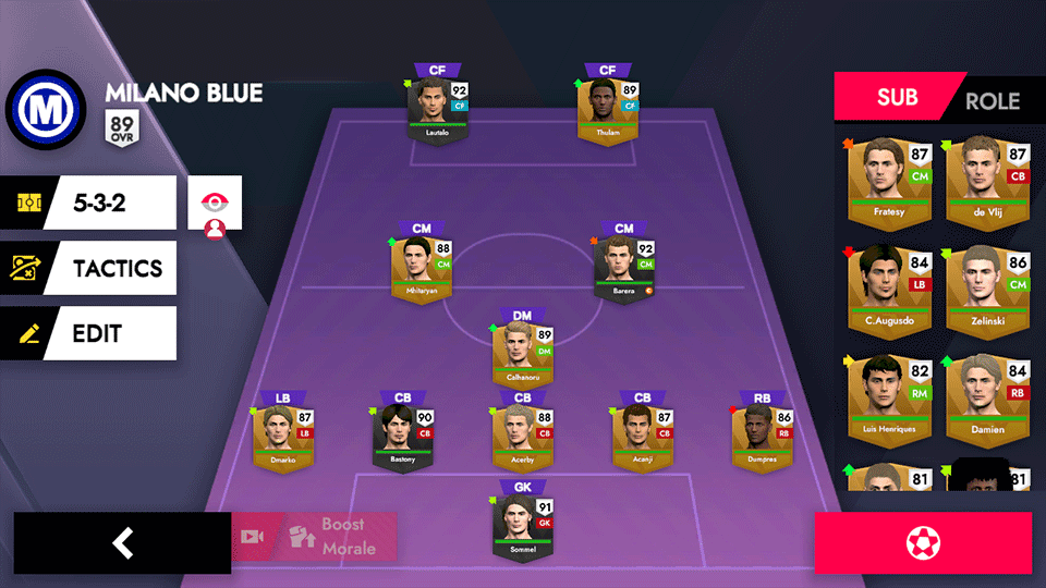 3、用高度自定的战术释放您的超级球员的全部球技,让您的足坛梦终于成真。
