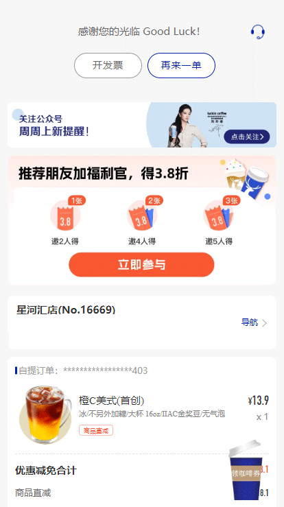4、瑞幸自由卡:每期8杯特价,封顶可省160元。
