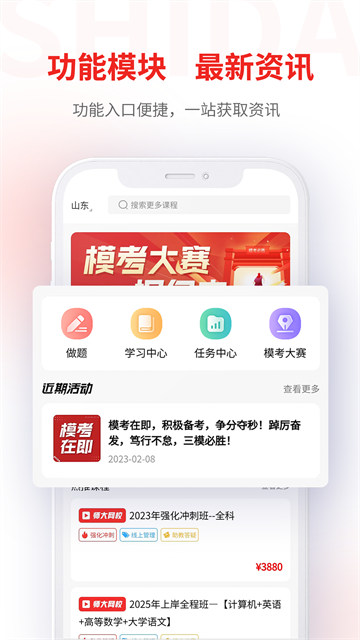 英语、计算机、高数、大学语文、政治五大学科一次打包,考纲、政策、评分标准实时同步,山东等29省市考生可直接按省定制学习计划。