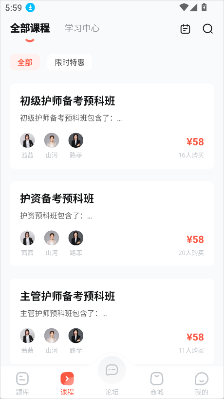 覆盖各类护士考试基础课程、专题课程、考试技巧课程。