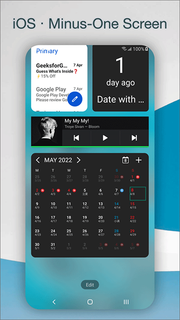2、长按指示器出现背景阴影后,横滑可以随意切换页面,长按得更久还能出现页面管理。