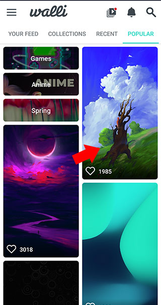 1、下载并打开walli壁纸并选择自己喜欢的壁纸类别后,找到自己喜欢的壁纸并点击
