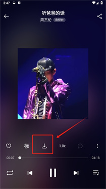 2、然后选择想要下载的音乐,点击进入播放页面,点击下载按钮