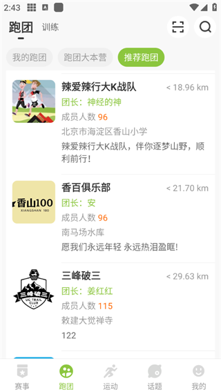 3、加入跑团,与团员共同成长,共同分享跑步乐趣;