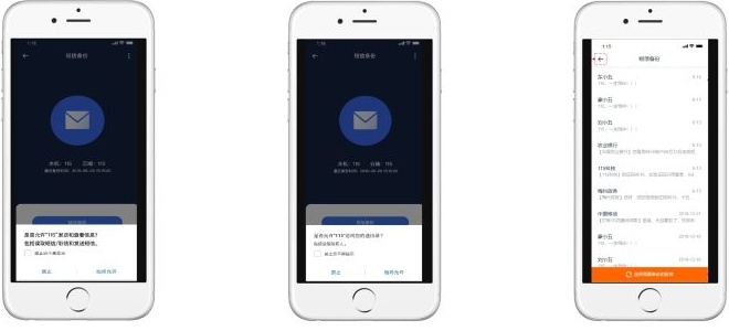 ②读取后即可点击当前页面中的「短信备份」功能进入短信备份列表,可通过勾选或者全选进行短信备份。