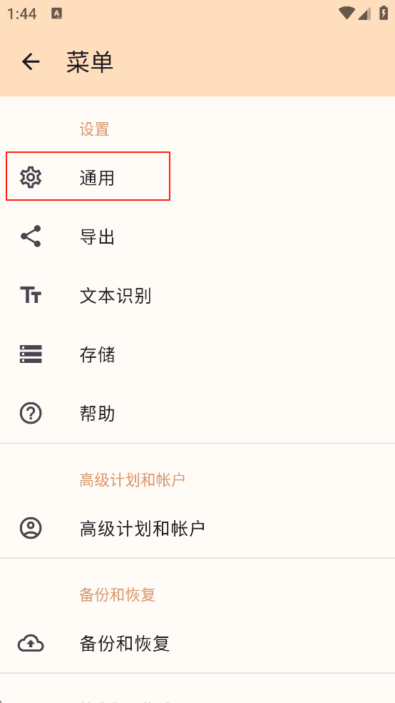 2、然后点击【通用】