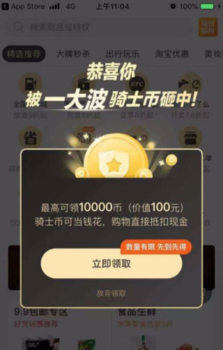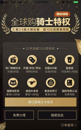 4、骑士尊贵购物折扣:精选天猫、考拉、京东、淘宝优质商品。