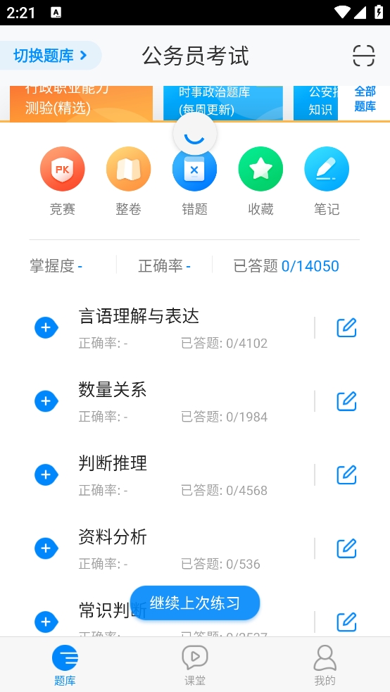 2、【功能特点】在线做题、真题解析、每日竞赛、错题收藏、网友讨论等丰富功能,极少的流量消耗,每日提供超过10场的专项竞赛,涵盖常识判断、数量关系、资料分析、言语理解、判断推理等行测各个考点。